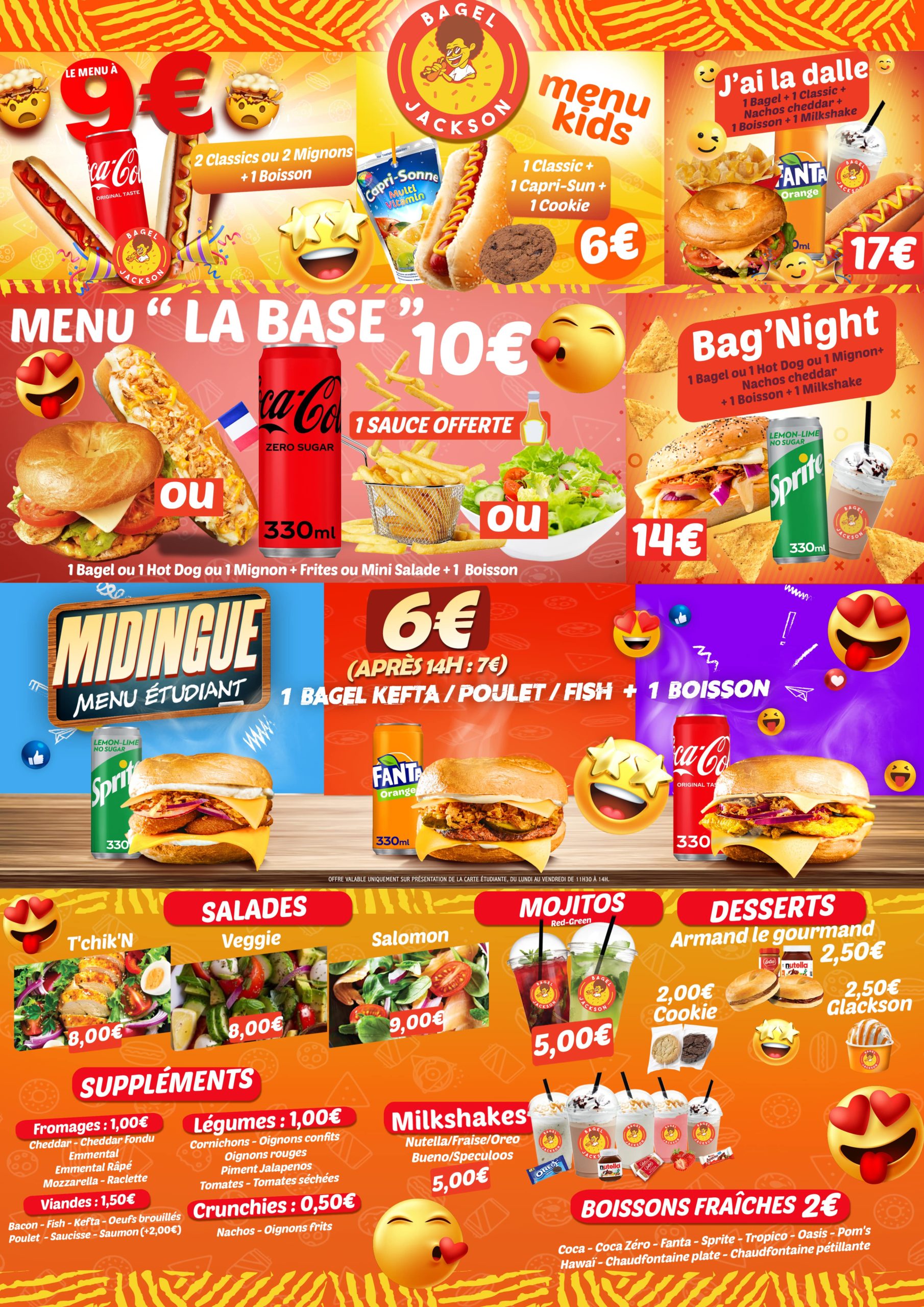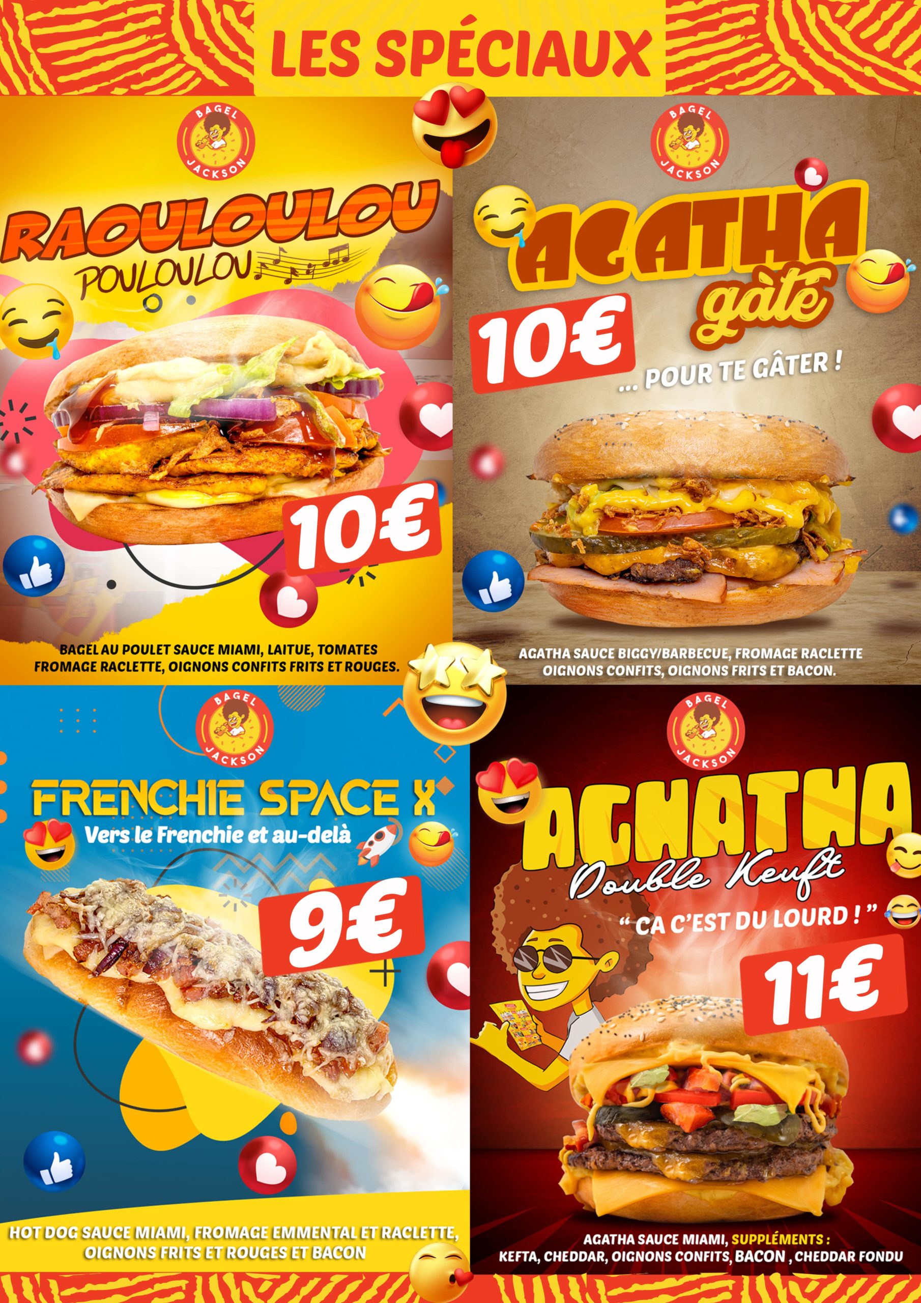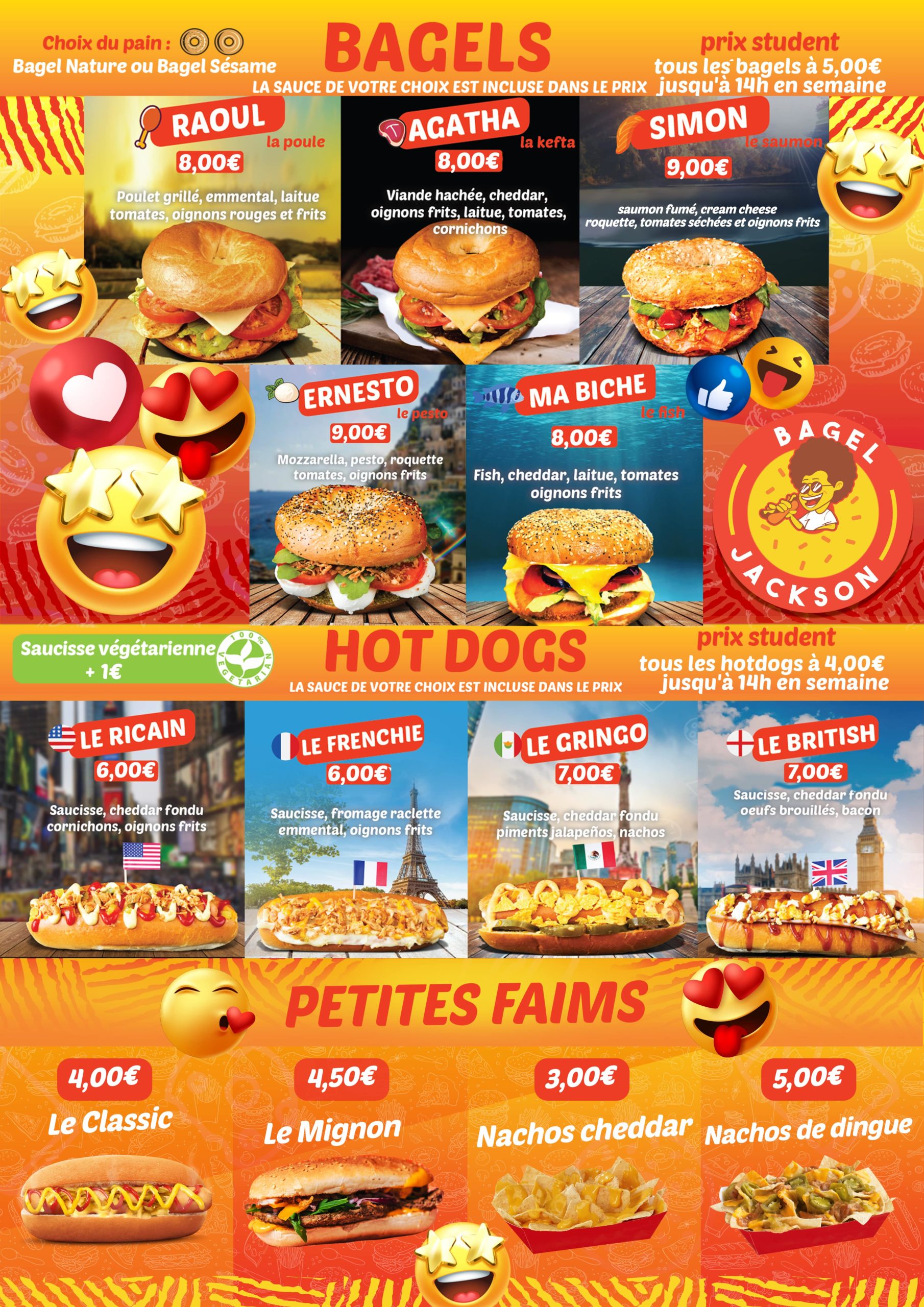 En fonction du Bagel Jackson dans lequel vous vous rendrez, il est possible que le menu varie légèrement. Pour consulter le menu de votre BJ, choisissez votre lieu.
